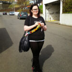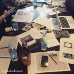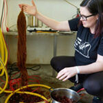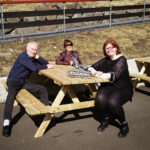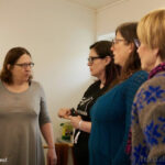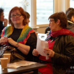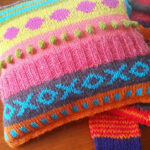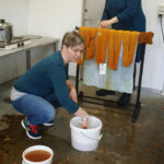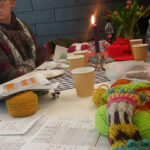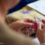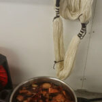 Á Bindifestivalnum fórum við á námskeið þar sem mamma bætti við sig þekkingu á færeyskum sjölum og stúderaði hvernig væri hægt að sækja innblástur úr náttúrunni til að teikna upp munstur. Ég fór út fyrir þægindarammann minn og fór á námskeið í að jurtalita ull og fékk kennslu um góða leið við að blanda saman munstrum og litum í prjóni. Einnig sátum við fyrirlestur um framtíð færeysku ullarinnar sem var að sjálfsögðu á færeysku.