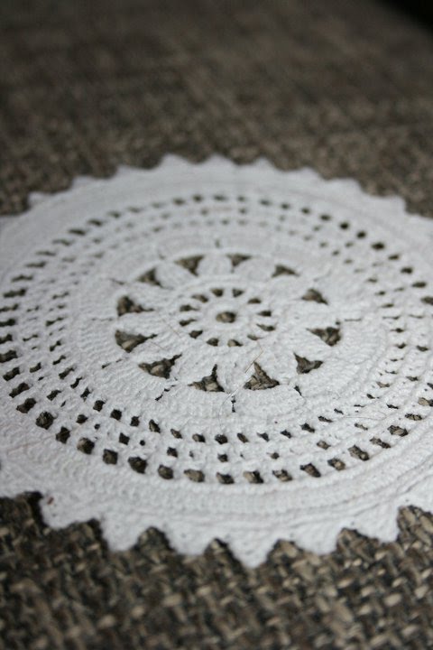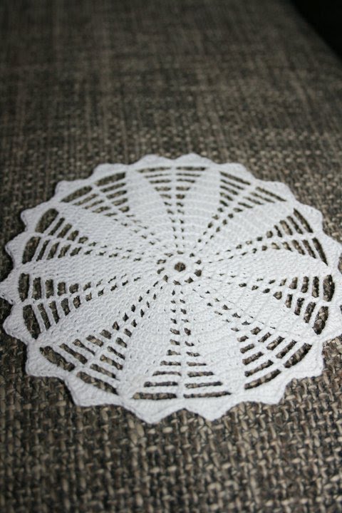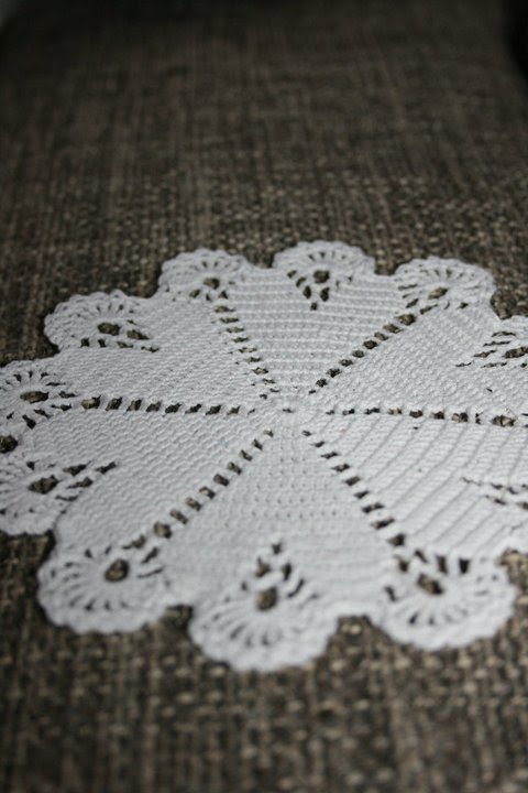 Fékk æði um daginn fyrir að hekla dúka. Ætlaði að nota þá í annað en það féll upp fyrir. Svo dúkarnir voru stífaðir. Hvað ég ætla að gera við þá núna hef ég eiginlega ekki hugmynd. En ég er búin að sanna fyrir sjálfri mér að ég get heklað dúka.