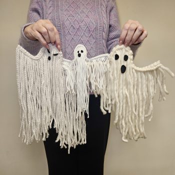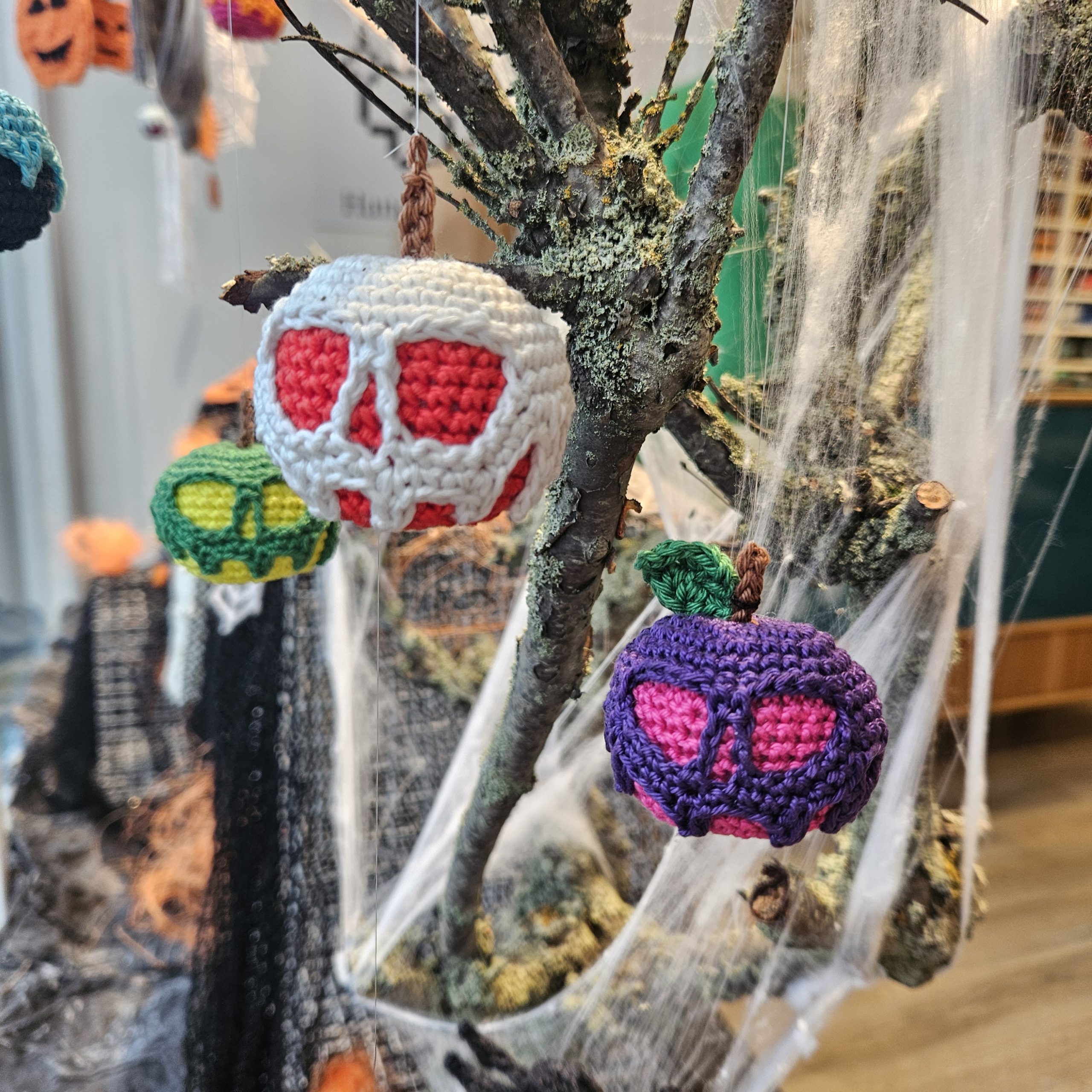 Guðmunda systir/dóttir er svo snillingurinn sem kom með hugmyndina að Halloween glugganum og snillingurinn sem bjó til allt flottasta Halloween skrautið okkar. Við erum svo heppnar að hafa Guðmundu sem kann að gera Macramé og hefur þolinmæðina í að hekla Amigurumi. Guðmunda á miklar þakkir skilið fyrir alla vinnuna sem hún lagði í þetta ❤️