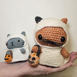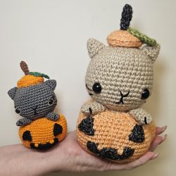 Krúttlegu kisurnar eru í uppáhaldi, enda alltof sætar. Uppskriftin af þeim er líka keypt á Ravelry. Minni kisurnar eru heklaðar úr Schepjees Catona á nál nr. 3 og stærri kisurnar úr Scheepjes Stone Washed XL á nál nr. 5.