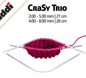 3 prjónar í pakka – prjónar á hvorum enda og lítil snúra á milli. Stærðir 2-5 eru 21-26 cm að lengd, stærðir 5,5-8 eru 26 cm að lengd – kíktu á video hérna