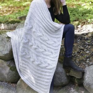 Prjónað teppi með köðlum úr 2 þráðum af Drops Air.