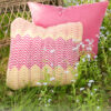 Prjónaður hringlaga púði með gatamynstri úr Drops Alpaca. Passar fyrir púða 40 cm að þvermáli.