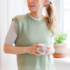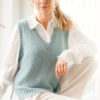 Vestið er prjónað í sléttu prjóni með köntum í stroffprjóni og klauf í hliðum.