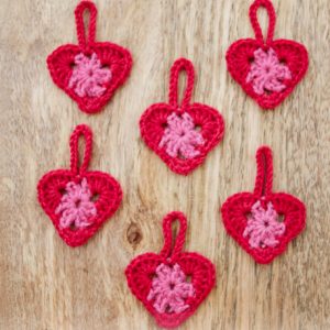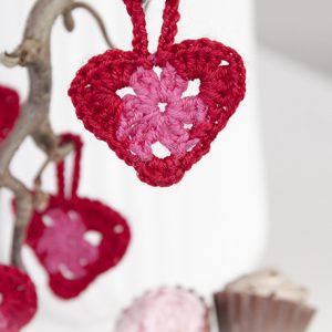 Heklað hjarta fyrir jólin eða valentínusardaginn.
