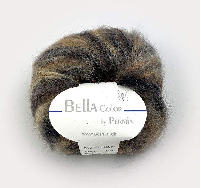 Bella er ein vinsælasta garntegundin hjá Permin. Samsetningin er klassísk kid mohair og ull, sem gefur loðið og sítt yfirbragð með löngum mohair þráðum. Garnið er létt og hlýtt og hentar sérstaklega vel í stórar peysur, þar sem það heldur léttu og loftkenndu útliti.