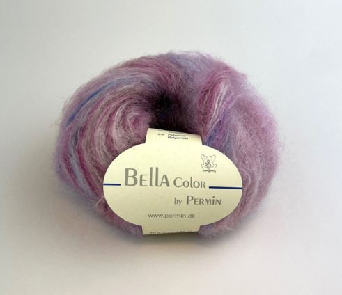 Bella er ein vinsælasta garntegundin hjá Permin. Samsetningin er klassísk kid mohair og ull, sem gefur loðið og sítt yfirbragð með löngum mohair þráðum. Garnið er létt og hlýtt og hentar sérstaklega vel í stórar peysur, þar sem það heldur léttu og loftkenndu útliti.