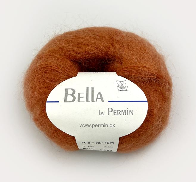 Bella er ein vinsælasta garntegundin hjá Permin. Samsetningin er klassísk kid mohair og ull, sem gefur loðið og sítt yfirbragð með löngum mohair þráðum. Garnið er létt og hlýtt og hentar sérstaklega vel í stórar peysur, þar sem það heldur léttu og loftkenndu útliti.