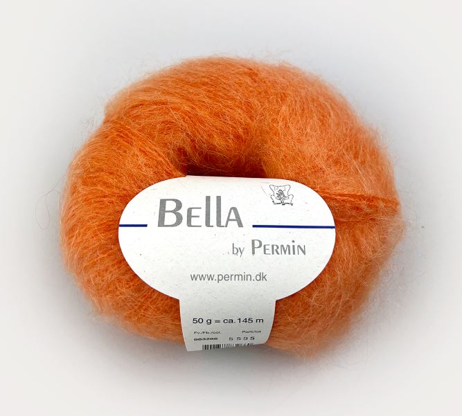Bella er ein vinsælasta garntegundin hjá Permin. Samsetningin er klassísk kid mohair og ull, sem gefur loðið og sítt yfirbragð með löngum mohair þráðum. Garnið er létt og hlýtt og hentar sérstaklega vel í stórar peysur, þar sem það heldur léttu og loftkenndu útliti.
