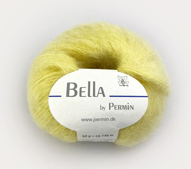 Bella er ein vinsælasta garntegundin hjá Permin. Samsetningin er klassísk kid mohair og ull, sem gefur loðið og sítt yfirbragð með löngum mohair þráðum. Garnið er létt og hlýtt og hentar sérstaklega vel í stórar peysur, þar sem það heldur léttu og loftkenndu útliti.