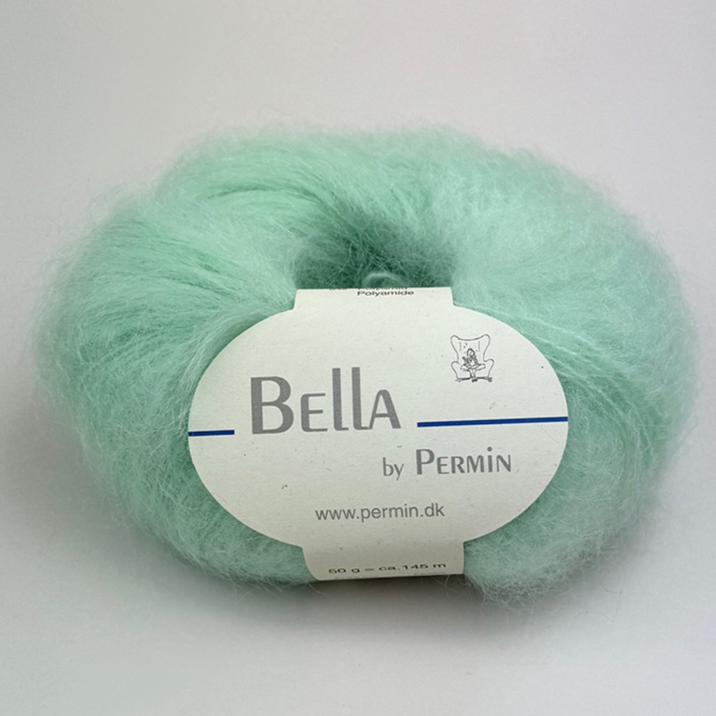 Bella er ein vinsælasta garntegundin hjá Permin. Samsetningin er klassísk kid mohair og ull, sem gefur loðið og sítt yfirbragð með löngum mohair þráðum. Garnið er létt og hlýtt og hentar sérstaklega vel í stórar peysur, þar sem það heldur léttu og loftkenndu útliti.