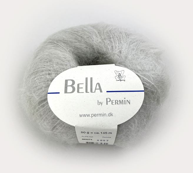 Bella er ein vinsælasta garntegundin hjá Permin. Samsetningin er klassísk kid mohair og ull, sem gefur loðið og sítt yfirbragð með löngum mohair þráðum. Garnið er létt og hlýtt og hentar sérstaklega vel í stórar peysur, þar sem það heldur léttu og loftkenndu útliti.