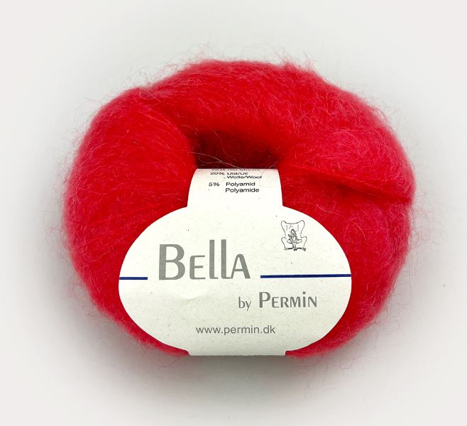 Bella er ein vinsælasta garntegundin hjá Permin. Samsetningin er klassísk kid mohair og ull, sem gefur loðið og sítt yfirbragð með löngum mohair þráðum. Garnið er létt og hlýtt og hentar sérstaklega vel í stórar peysur, þar sem það heldur léttu og loftkenndu útliti.