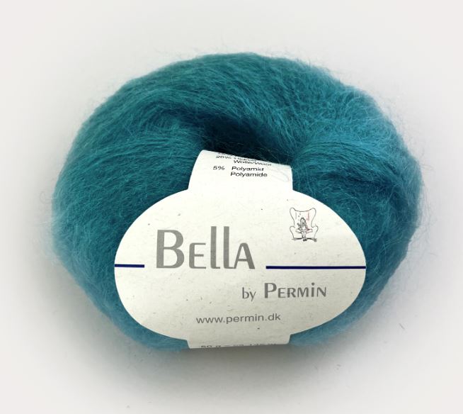 Bella er ein vinsælasta garntegundin hjá Permin. Samsetningin er klassísk kid mohair og ull, sem gefur loðið og sítt yfirbragð með löngum mohair þráðum. Garnið er létt og hlýtt og hentar sérstaklega vel í stórar peysur, þar sem það heldur léttu og loftkenndu útliti.