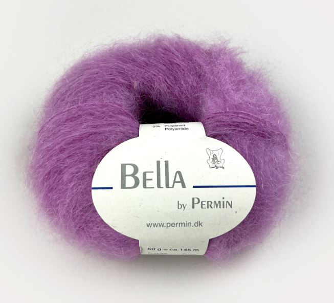 Bella er ein vinsælasta garntegundin hjá Permin. Samsetningin er klassísk kid mohair og ull, sem gefur loðið og sítt yfirbragð með löngum mohair þráðum. Garnið er létt og hlýtt og hentar sérstaklega vel í stórar peysur, þar sem það heldur léttu og loftkenndu útliti.