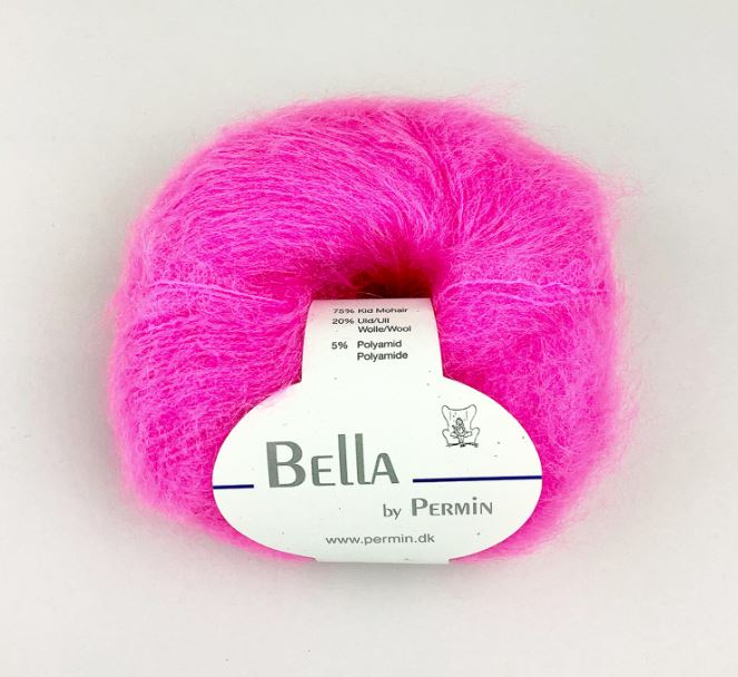Bella er ein vinsælasta garntegundin hjá Permin. Samsetningin er klassísk kid mohair og ull, sem gefur loðið og sítt yfirbragð með löngum mohair þráðum. Garnið er létt og hlýtt og hentar sérstaklega vel í stórar peysur, þar sem það heldur léttu og loftkenndu útliti.