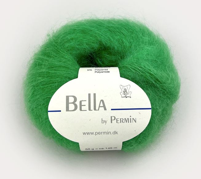 Bella er ein vinsælasta garntegundin hjá Permin. Samsetningin er klassísk kid mohair og ull, sem gefur loðið og sítt yfirbragð með löngum mohair þráðum. Garnið er létt og hlýtt og hentar sérstaklega vel í stórar peysur, þar sem það heldur léttu og loftkenndu útliti.