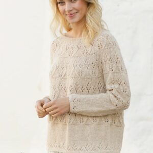 Prjónuð peysa með hringlaga berustykki úr Drops Air. Stykkið er prjónað með gatamynstri.
