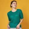 Bluse med rundt hulmønsterbærestykke