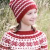 Prjónuð húfa og vettlingar með norrænu mynstri úr DROPS Karisma.