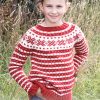 Prjónuð peysa fyrir börn úr DROPS Karisma eða DROPS Lima. Stykkið er prjónað ofan frá og niður með norrænu mynstri.