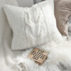Prjónað púðaver með köðlum. Stykkið er prjónað úr DROPS Eskimo.