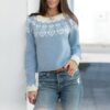 Prjónuð peysa úr DROPS Merino Extra Fine. Peysan er prjónað ofan frá og niður með hringlaga berustykki og norrænu mynstri.