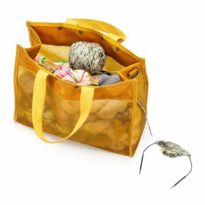 Mesh Tote taskan frá DellaQ er í þægilegri stærð og rúmar auðveldlega stór verkefni auk fylgihluta. Töskunni er hægt að loka með 4 smellum, eins og við þekkjum frá Oh Snap töskunum frá DellaQ