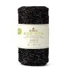 Skemmtilegt endurunnið bómullargarn. 75% endurunnin bómull, 15% polyester og 10% glitþráður. Þráðurinn er 2,5-3mm þykkur. Dokkan er 250g & 200m.