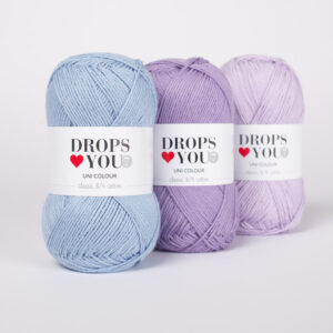 Garnið hentar líka annarri tegund verkefna eins og í sumarflíkur, fylgihluti og falleg hekluð leikföng, þessi nýja DROPS ♥ You viðbót er meðhöndluð til að þola þvott í þvottavél sem þýðir að garnið hentar vel til daglegra notkunar og auðvitað í barnafatnað!