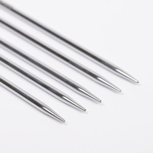 Sett með stuttum sokkaprjónum (15 cm) úr messing og crome húðun.
