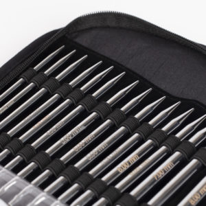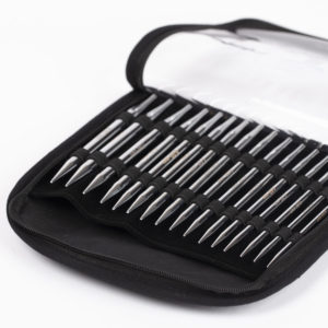 Taktu prjónana með þér hvert á land sem er, sett með víxlanlegum hringprjónum úr messing og crome húðun. Prjónarnir eru í fallegri tösku með rennilás og settið inniheldur
