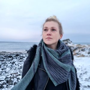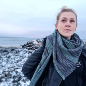 Garn: Reglulega sjalið (græna & gráa) er heklað úr 100% Merino frá Dottir Dyeworks. Fingering/4 ply, 100 g / 400 m. Það fóru samtals 400 g í sjalið (4 hespur), 200 g af litnum Mint Julep og 200 g af litnum Stone.