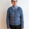 Peysan er prjónuð neðan frá og upp. Bolur og ermar sameinað á hringprjón, rúnað berustykki með mynstri.