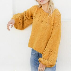 Peysan er prjónuð ofan frá og niður. Mynstur á framstykki, axlarstykki, bakstykki og ermar prjónað slétt.