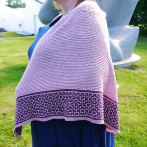 Sjal: Bredde øverst cirka 180 cm & højde 48 cm