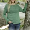 Prjónuð peysa með hringlaga berustykki úr Drops Nord. Stykkið er prjónað með gatamynstri og áferðamynstri.