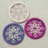 Heklaðir pottaleppar með stuðlum og stuðlakrókum úr DROPS Paris. Stykkið er heklað í hring frá miðju og út.