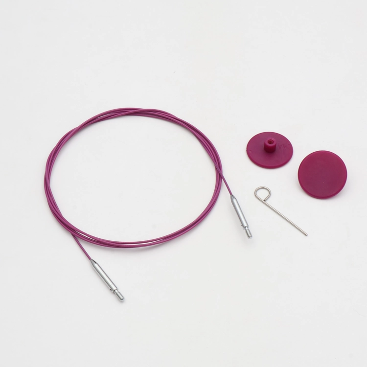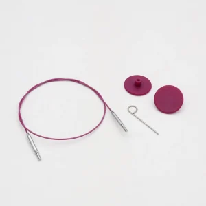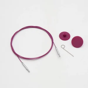 Snúrurnar eru með ryðfríu stáli með 360° snúningstengingu frá KnitPro. Snúrurnar eru endingargóðar, sveigjanlegar og með mjúkar tengingar sem snúast 360° fyrir þægilegri og sveigjanlegri prjónaupplifun.
