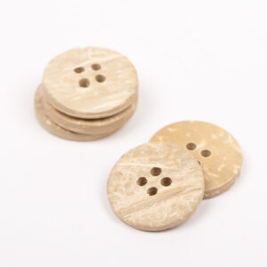 Hringlaga tölur úr kókoshnetu. Tölur úr kókoshnetu eru ekki bara endingargóðar heldur einnig umhverfisvænar. Framleiddar út kókoshnetuskeljum sem hafa verið meðhöndlaðar með bleikiefnum – náttúrulegu efni – hver tala er með smá breytileika í lit og áferð og hægt er að nota frá báðum hliðum til að fá annað útlit.