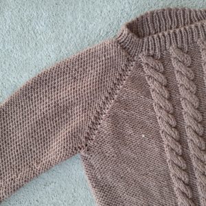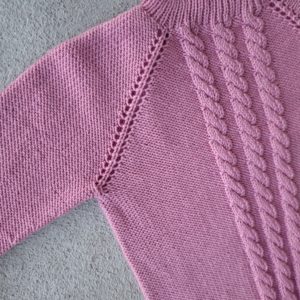 Peysan er prjónuð á röngunni, ofan frá og niður.