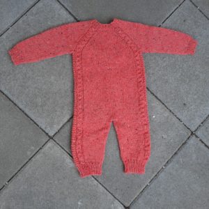 Gallinn er prjónaður ofan frá og niður. Fyrst fram og til baka en síðan í hring. Laskaútaukning og mynstur meðfram listum að framan sem heldur áfram niður skálmar.
