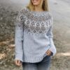 Prjónuð peysa og húfa með gatamynstri úr Drops Flora.