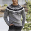 Peysa prjónuð með norsku mynstri og hálsklútur úr Drops Karisma eða Merino Extra Fine.