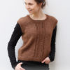 Vestið er prjónað ofan frá og niður með útaukningu fyrir axlarsæti og gatamynstri.