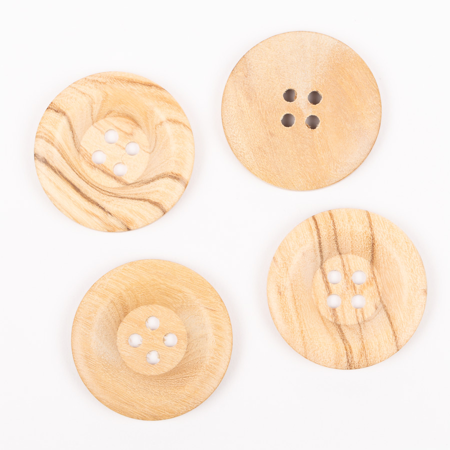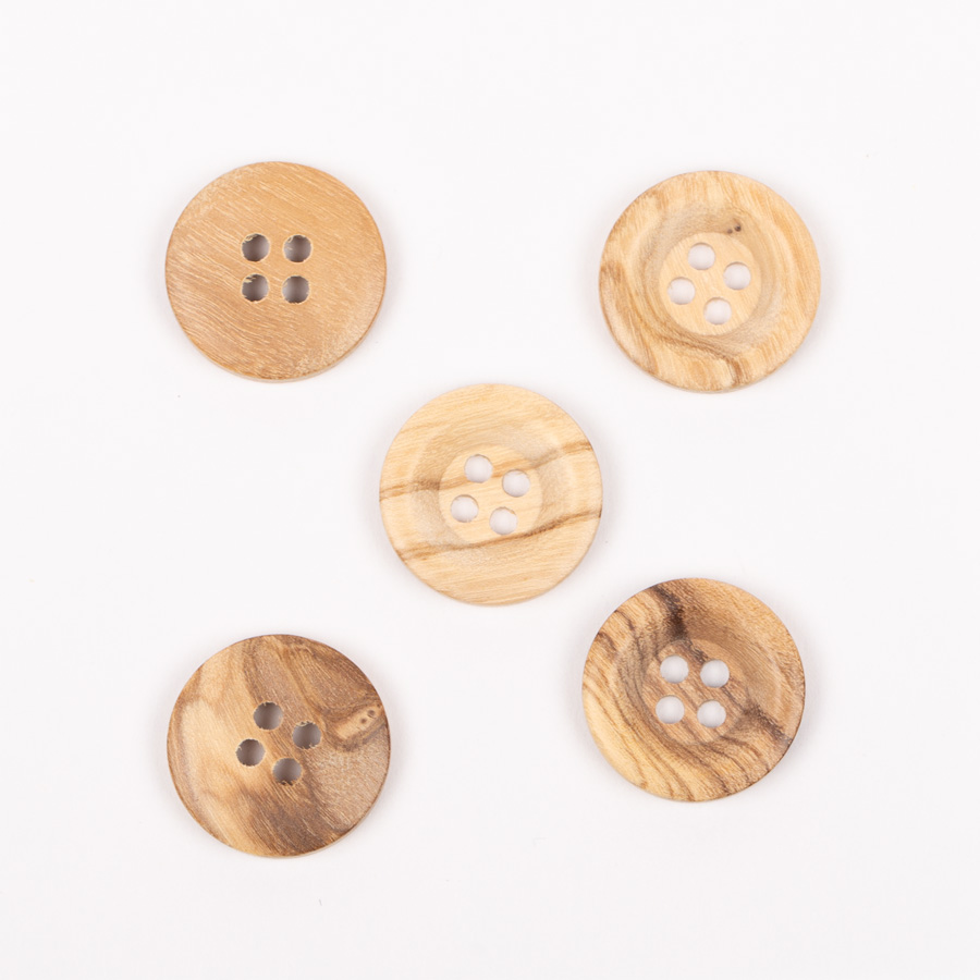 Hringlaga tölur úr ólífuvið með fínlegum kanti.