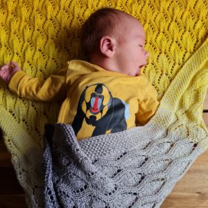 Fallegt teppi með laufblaðamynstri. Auðvelt er að stækka eða minnka teppið með því að fjölga mynstrum.