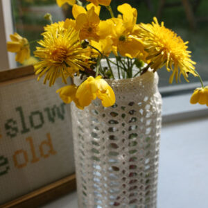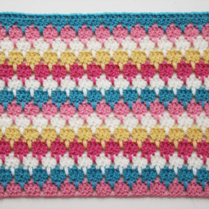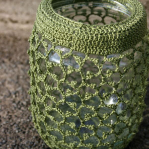 Heklfesta: 16 hálfstuðlar x 11 umferðir = 10 x 10 cm, fyrir þvott.