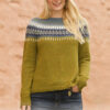 Prjónuð peysa með hringlaga berustykki og norrænu mynstri úr DROPS Merino Extra Fine. Stykkið er prjónað ofan frá og niður.