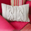 Prjónað púðaver með afbrigði af hálfu klukkprjóni. Stykkið er prjónað úr DROPS Merino Extra Fine.